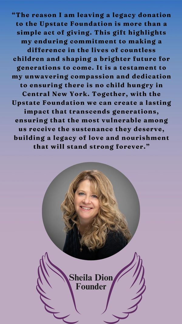 This empowers you to make a gift as part of your legacy. Learn how you can gift stocks, make donations directly from your IRA and more. For more information please contact the Upstate Foundation and ask for Carolyn Hendrickson.