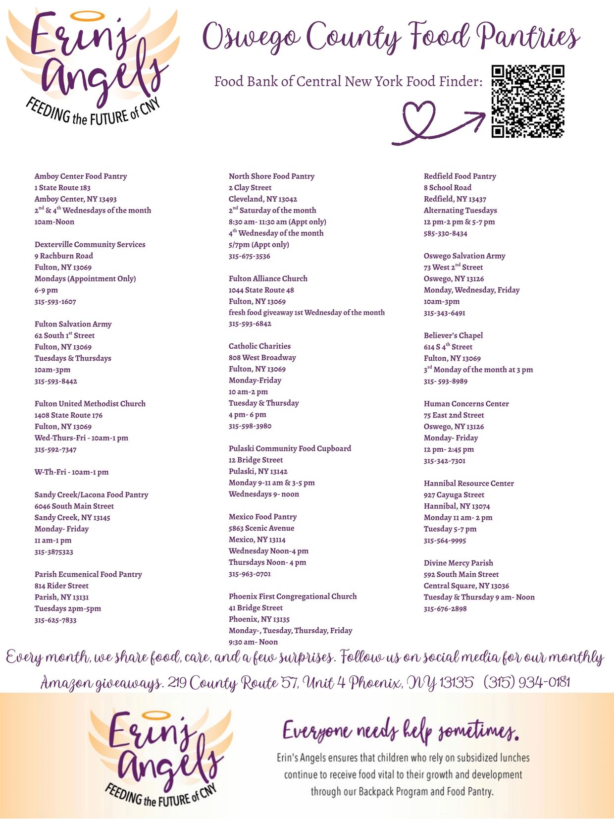Pennellville UMC receives FREE BREAD from Panera on Saturday night and distribute it to families with need on Sundays. If someone has a need, they may contact Pastor Jeff (Jhodge312@yahoo.com).